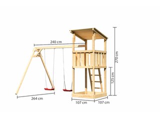 Preisvergleich zu Karibu Anna Spielturm, naturbelassen, nordische Fichte, 347x264x270cm, mit Doppelschaukel von 4 Anbietern