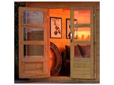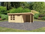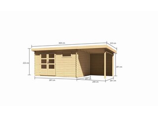 Preisvergleich zu Karibu Bastrup 8, naturbelassen, Fichtenholz 28mm, 604,5 x 297 x 222 cm, Pultdach, Anbau 2m mit Rückwand von 4 Anbietern