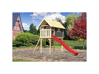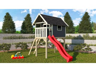 Preisvergleich zu Karibu Gernegroß Stelzenhaus, terragrau, nordische Fichte, 120x244x325cm, mit Rutsche rot von 2 Anbietern