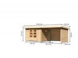 Preisvergleich zu Karibu Trittau 3, naturbelassen, Fichtenholz 40mm, 616,5 x 297 x 217 cm, Pultdach, Anbau 3,3m mit Rück- und Seitenwand von 4 Anbietern
