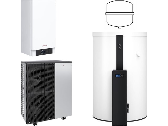 Preisvergleich zu Viessmann Split Luft/Wasser-Wärmepumpe Vitocal 200-S AWB-E-AC 201.D16 400V mit Regelung Vitotronic 200, Pufferspeicher 120-E SVW 600l + Frischwasser-Modul - Z015550 von 1 Anbietern