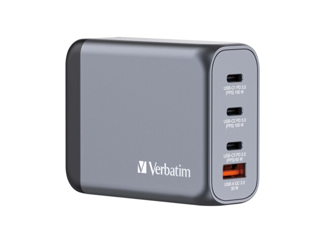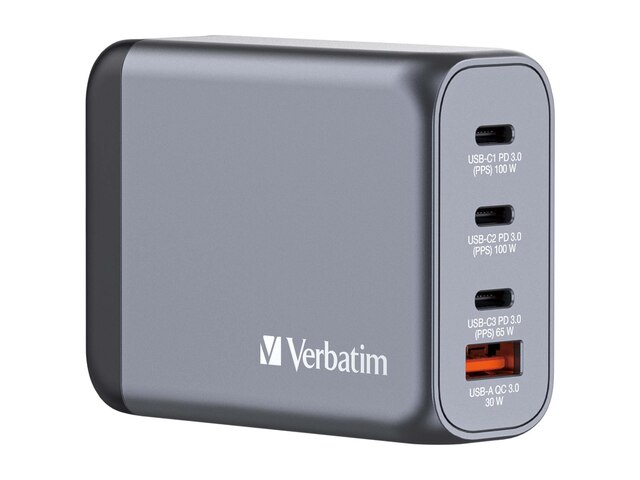 Preisvergleich zu Verbatim GaN-Ladegerät 100W, 1x USB-A , 3x USB-C (32202) von 17 Anbietern