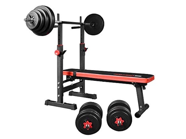 ASINs zu TrainHard Multi Hantelbank Blackcombo klappbar mit Lang- und Kurzhantelstange und 90kg Hantelscheiben