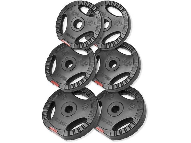 Preisvergleich zu Gorilla Sports 2x5 2x2,5 2x1,25kg Hantelscheibenset Kunststoff Gripper von 3 Anbietern