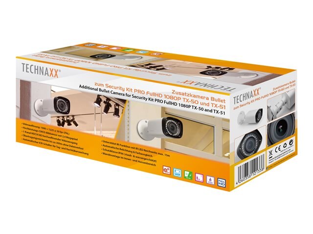Produktbeschreibung: Technaxx Bullet for Kit PRO TX-50 and TX-51 - Überwachungskamera Gerätetyp: Überwachungskamera - fest - Außenbereich - staub-/wasserdicht Kameramontagetyp: Wandmontage ...