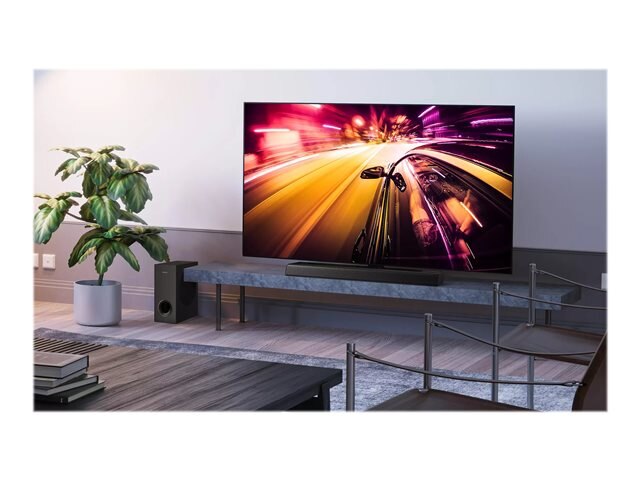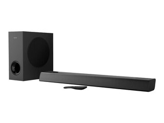 | Abmessungen (B x T x H)/Gewicht | Tonleiste: 80 cm x 10.8 cm x 6.75 cm / 2.09 kg ¦ Subwoofer: 30 cm x 15 cm x 34.3 cm / 5.08 kg |