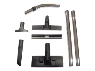 Mitgeliefertes Zubehör | Kegelförmige Düse, Bodendüse, Fugendüse, Nassreinigungsdüse, Verlängerungsrohr (2x), Grobschmutzwerkzeug, gebogener Griff, Ansaugschlauch |